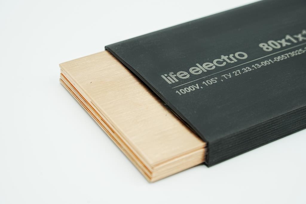Гибкая изолированная шина изготавливаются из нескольких слоев тонкого проводника электролитической меди и ПВХ-изоляции с высоким электрическим сопротивлением.